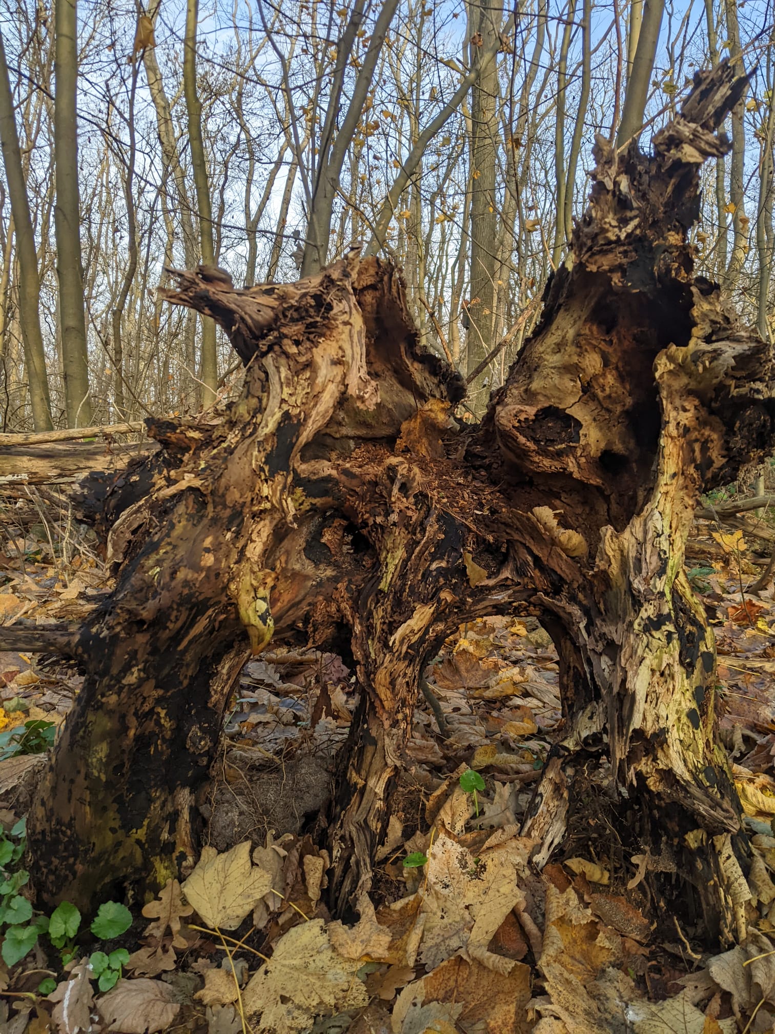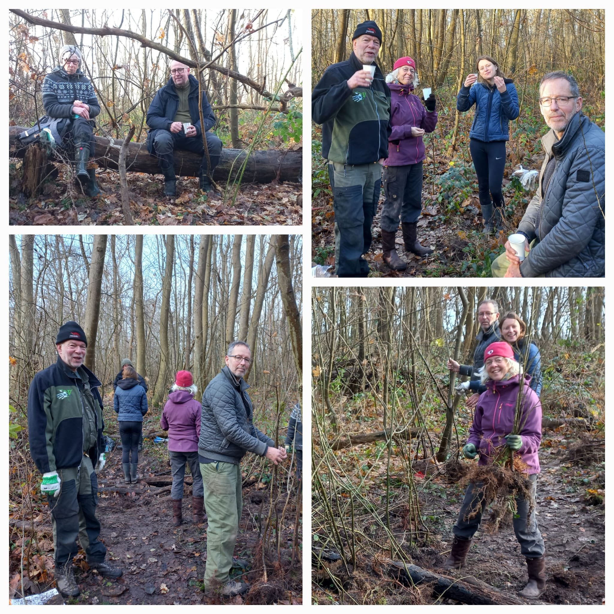 Na de chocolademelk, appeltaart met slagroom zetten Thijs en ik onze tanden in de eerste oogst. Thijs legt de handel op soort en ik graaf de gleuven uit waar ze straks ingaan. Op de app doe ik later verslag: ‘….het Ananasbos is geplunderd, dit is de score: lijsterbes 6x, meidoorn, 20x, veldiep 20x, es 150x, krentenboom 3x, esdoorn 145x, hulst 20x en mix 15x…..’. Ondanks de matige biodiversiteit in het bos, geen slechte oogst. Het is altijd een pracht ervaring om hier te struinen. Dus Ananasbosliefhebbers: tot de volgende oogstdag!