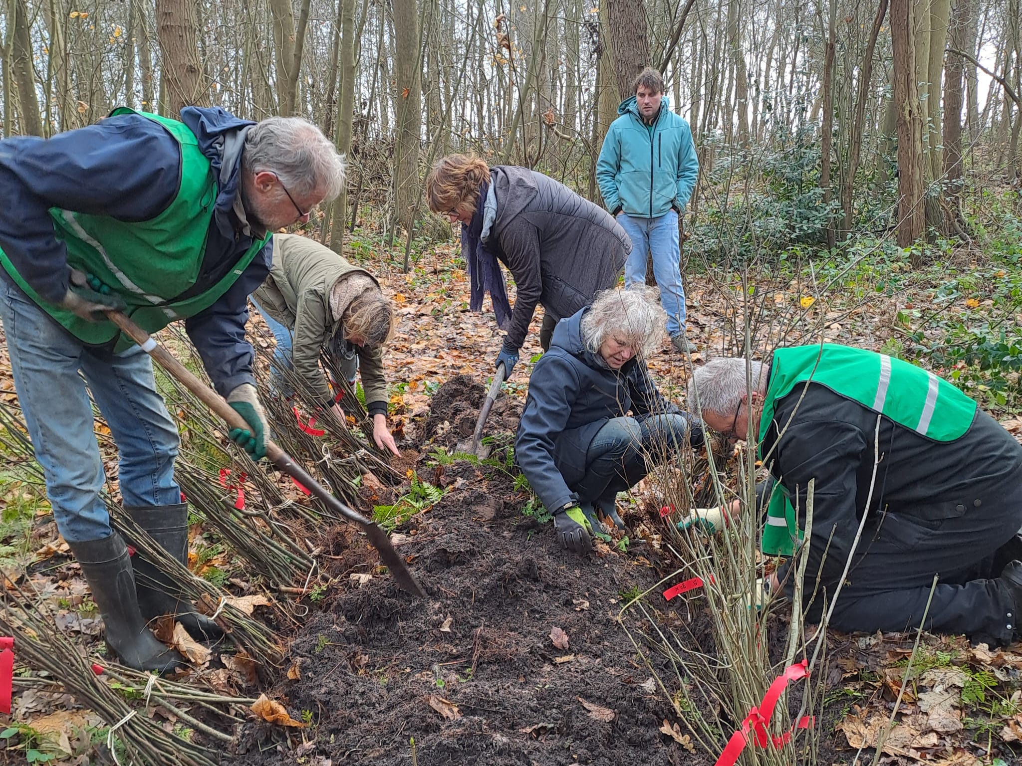 Het koppeltje is woensdag de 11e niet groot, we zijn met z’n zevenen met één nieuw gezicht: Dieneke uit Julianadorp. Na het voorstel rondje, vertel ik haar wat meer over het bos: ‘Het wemelt er van de essen en esdoorn, de kleintjes trek je er zo uit. En doe het rustig aan, geniet van de natuur’.