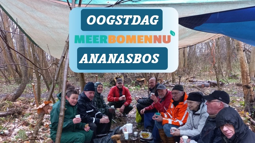 Op 21 december 2022 organiseerde ik in het Ananasbos m’n eerste oogstdag. Handig dat foto archief, zo drijven die mooie herinneren van drie jaar terug weer naar boven. Ik zie vleermuizenkenner Jan Boshamer met Trudy en Geert met z’n dochter Nikki. Zij is een bekend gezicht bij MeerBomenNu geworden, want met haar stralende foto start de nieuwsbrief van de bomenclub. Daarna volgden nog vele leuke oogstdagen in het Ananasbos. Niet altijd hadden we mooi weer. Die keer dat het stortregende kwam mijn gespannen surfzeil goed van pas bij het koffiedrinken.
