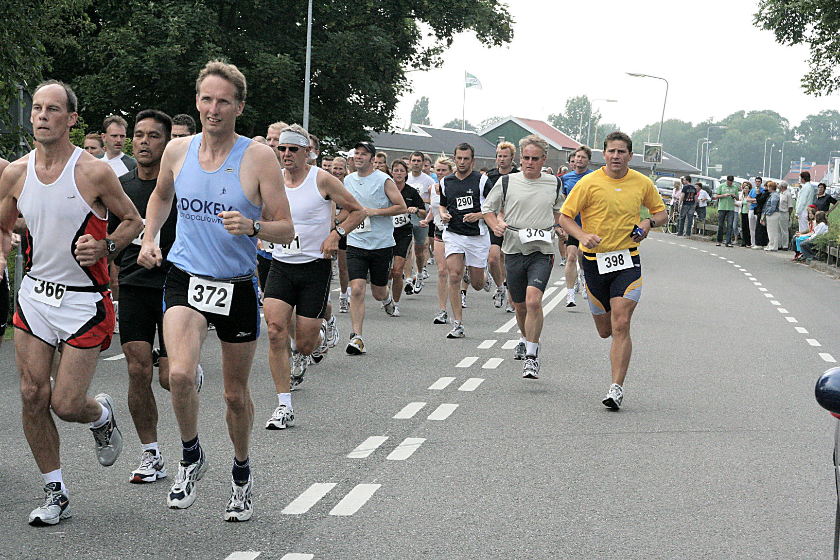 Zo’n 25 jaar was ik lid van de club, ook onze dochters waren aangestoken door het atletiek virus, terwijl Brigit het clubblad en de kantine deed. En daar zien we Bianca weer, die ook al tig jaren actief is bij Dokev. ‘Draaien jullie maar om, dan lopen we naar de snackbar, hier pikken er nog een paar aan’. We zijn de laatste en kleinste groep die voor de kortste afstand gaat. Even voorstellen wie is wie en daarna mogen we los. ‘Haal jij het voorste groepje in Cor en zeg bij het tunneltje dat ze teruglopen’. Nog maar net begonnen en ik word al aan het werk gezet door Bianca. Na een kwartiertje zijn we al bij de kantine voor de pauze, de anderen 2 groepen zijn nog onderweg.